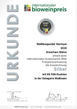 Unser Weißburgunder Barrique 2018 erhielt mit 88 PAR-Punkten die Silbermedaille in der Kategorie Weißwein.